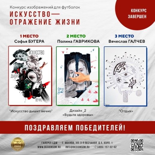 Завершился заочный молодёжный конкурс на лучшее изображение для футболки «Искусство — отражение жизни», сообщает Союз дизайнеров Москвы.