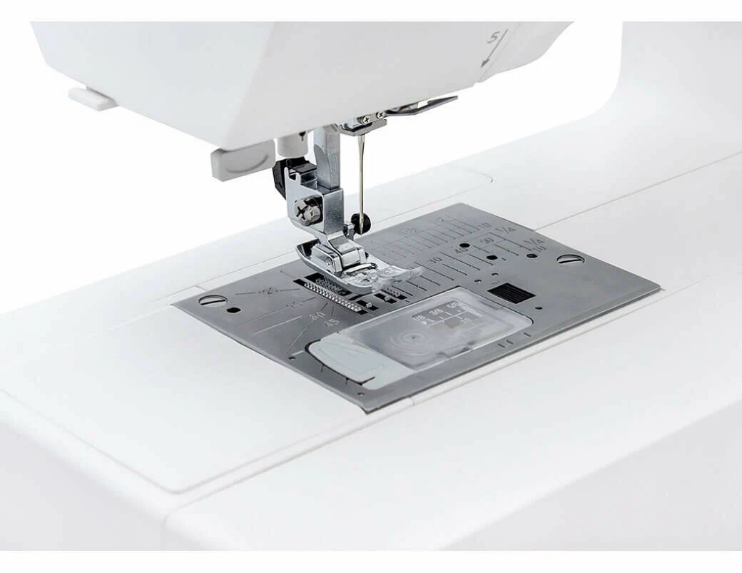 Большой выбор строчек, эргономичный дизайн и большие удобные кнопки управления максимально упрощают общение с машинкой. Выполняет 80 видов строчек, из них 4 вида пуговичных петель.
