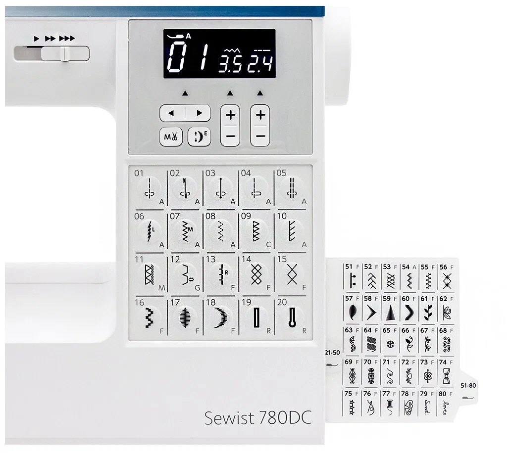 JANOME Sewist 780 DC (JANOME 780DC) - швейная машинка новой линейки Sewist швейных машин Decor Computer, обеспечивающая великолепное качество шитья в любых техниках. Большой выбор строчек, эргономичный дизайн и большие удобные кнопки управления максимально упрощают общение с машинкой. Выполняет 80 видов строчек, из них 4 вида пуговичных петель.